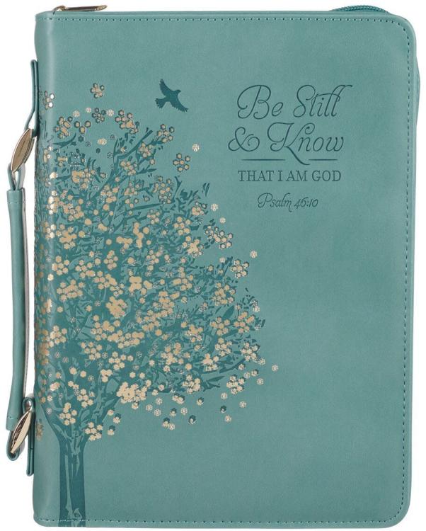 When your hands are already full with little ones, the Be Still and Know Teal Faux Leather Fashion Bible Cover is the ideal accessory to carry your Bible effortlessly and keep it protected from little hands, bumps, and moisture.