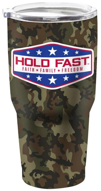 Hold fast to your values and stand up for your beliefs when you carry this rugged Camo Crest HOLD FAST 30 oz. Stainless Steel Tumbler in Camo. You know what you stand for, and you aren t afraid to show it. Inspire your family, friends, and neighbors to look to you as an example of faith in our nation, and in the Lord.