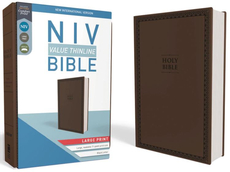 Crafted to deliver quality at an affordable price, the NIV Value Thinline Bible, Large Print is perfect for gifting or personal use. With a new custom typeface, this Bible delivers a more pleasant reading experience, making it even easier to understand God’s Word. This highly affordable edition includes black letter text, a quality cover, and presentation page, all in the portable thinline format that is less than one inch thick. Features: The full text of the accurate, readable, and clear New International Version (NIV) translation Clear, readable 12-point print size Less than one inch thick Black-letter text Double-column format Presentation page